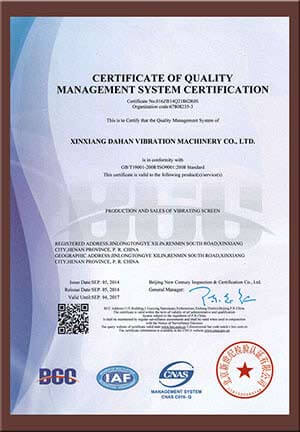 大漢螺旋輸送機設備及振動篩設備先后通過了ISO質量體系認證和歐盟CE認證