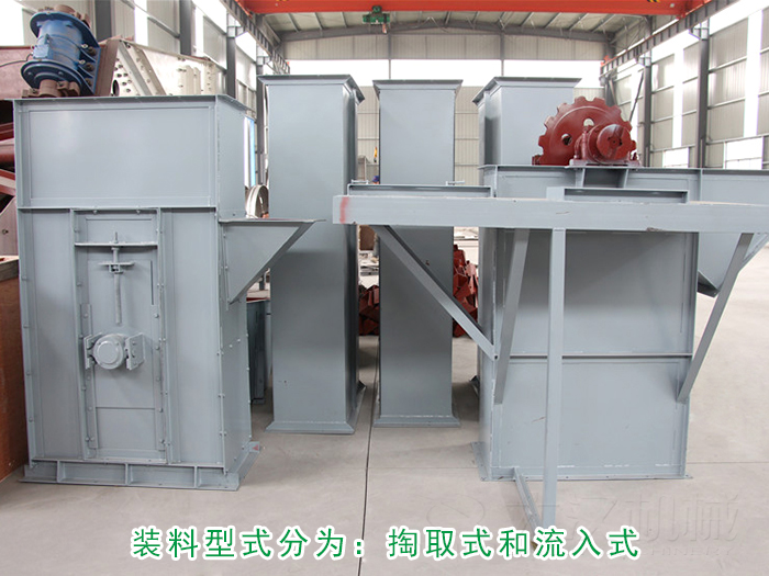 流入式:物料直接由進料口流入料斗內裝料。對于塊度較大和磨琢性大的物料;由于挖取阻力很大,故采用裝入法,料斗運動速度不能太高,通常不超過1m/s。
