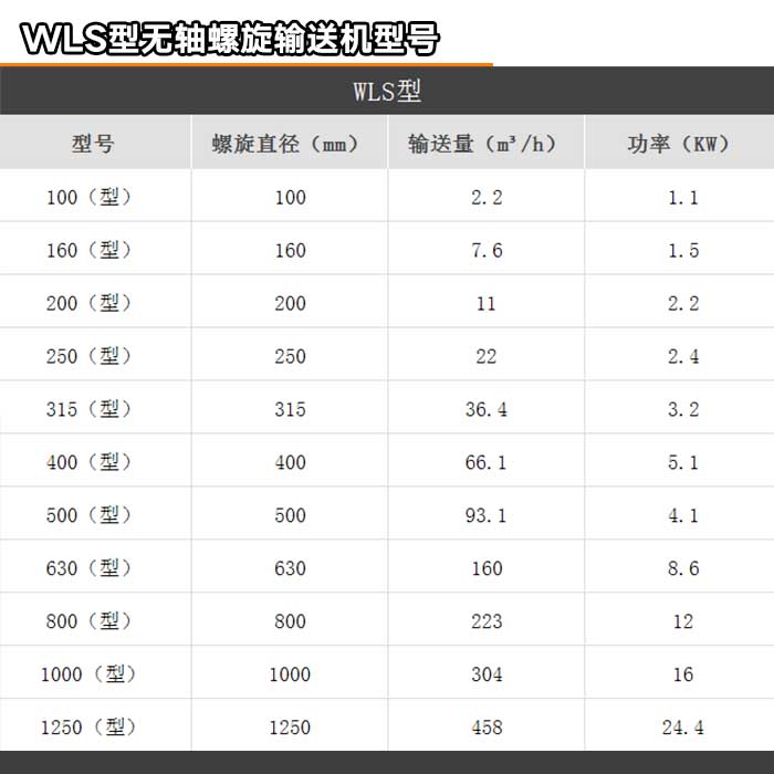 型號:LS型螺旋輸送機以管徑為型號:100mm,200mm,250mm,315mm,400mm,500mm,600mm等型號。