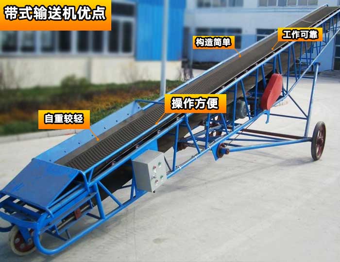 帶式輸送機是輸送機中使用為普遍的型式。它具有構造簡單,工作可靠,自重較輕,操作方便等優點,膠帶輸送機可用來在水平方向或坡度不大的傾斜方向 輸送各種散堆裝貨物和重較輕的成件貨物。在裝車機和卸車機中膠帶輸送機用以接收從斗式提升機拋來的貨物,并把它裝入車內或卸至貨位上。