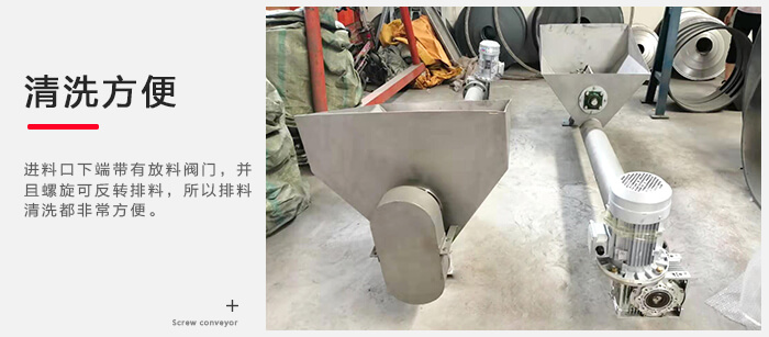 進(jìn)料口下端帶有放料閥門(mén),并且螺旋可反轉(zhuǎn)排料,所以排料、清洗都非常方便。
