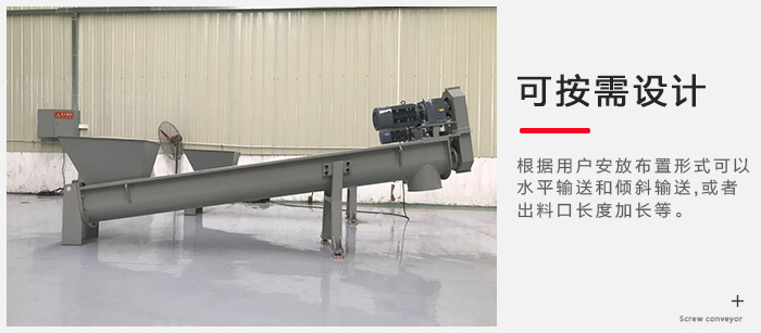 可以根據(jù)用戶(hù)安放布置形式可以水平輸送和傾斜輸送,也可以將出料口按照用戶(hù)要求的角度生產(chǎn),如出料口要求傾斜多少度,或者出料口長(zhǎng)度加長(zhǎng)等。