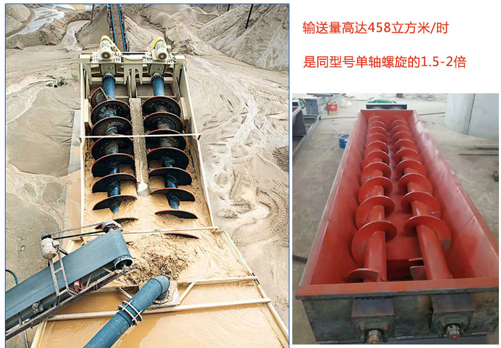 雙螺旋輸送機(jī)輸送量高達(dá)458立方米/時,由于是兩根螺旋同時旋轉(zhuǎn)可增大其輸送效率,其輸送量是同型號單軸螺旋輸送機(jī)的1.5-2倍;此外,還可多點裝料或卸料,可大大加大輸送產(chǎn)量,一小時可達(dá)100噸。