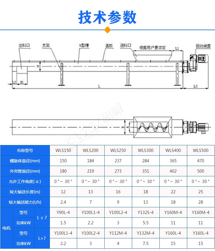 2、單臺輸送機的輸送長度可達60米,輸送量是相同直徑有軸輸送機的1.5倍。