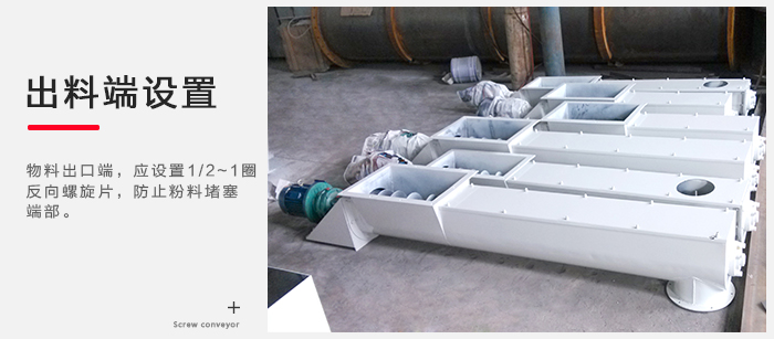 4)LS、GX型螺旋輸送機(jī)物料出口端,應(yīng)設(shè)置1/2~1圈反向螺旋片,防止粉料堵塞端部?!?/p>