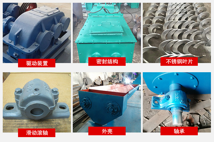 5)粉末螺旋輸送機(jī)由螺旋機(jī)本體、進(jìn)出料口及驅(qū)動(dòng)裝置三部分組成。